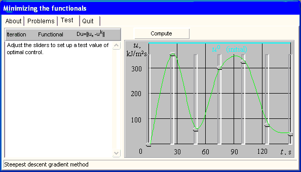"Minimizing the Functionals" - это интерактивная демонстрационная программа для исследования эффективности методов минимизации в бесконечномерном пространстве, например, в системах с распределенными параметрами. Красным выделены авторские методы.